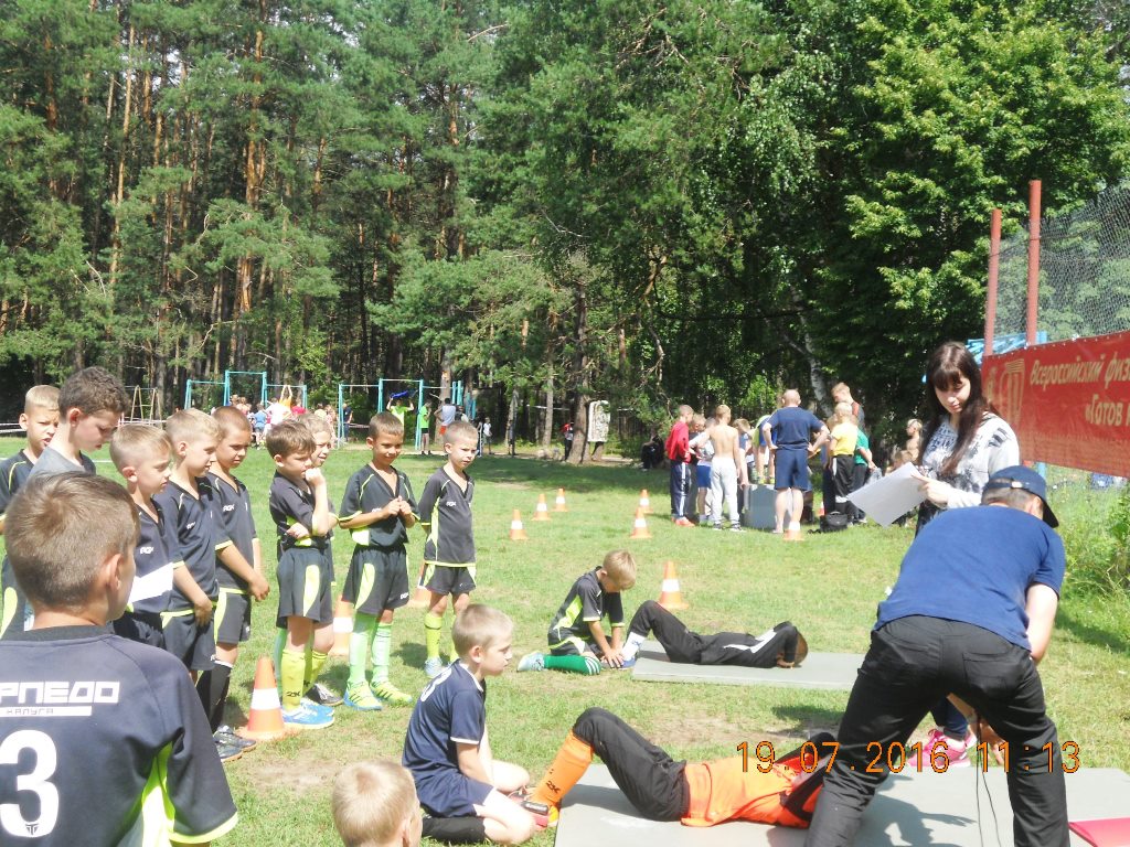 19 июля в лагере «Смена» сотрудники Калужского областного центра спортивной подготовки организовали и провели мероприятие, посвященное сдаче нормативов ГТО. Программа мероприятия состояла из соревнований по нескольким видам спорта: бег 60 и 100 метров, упражнения на пресс, прыжки в длину, метание мяча 130 г., упражнение на гибкость, подтягивание на перекладине и отжимания, стрельба из пневматической винтовки. Все ребята лагеря приняли активное участие в мероприятии.